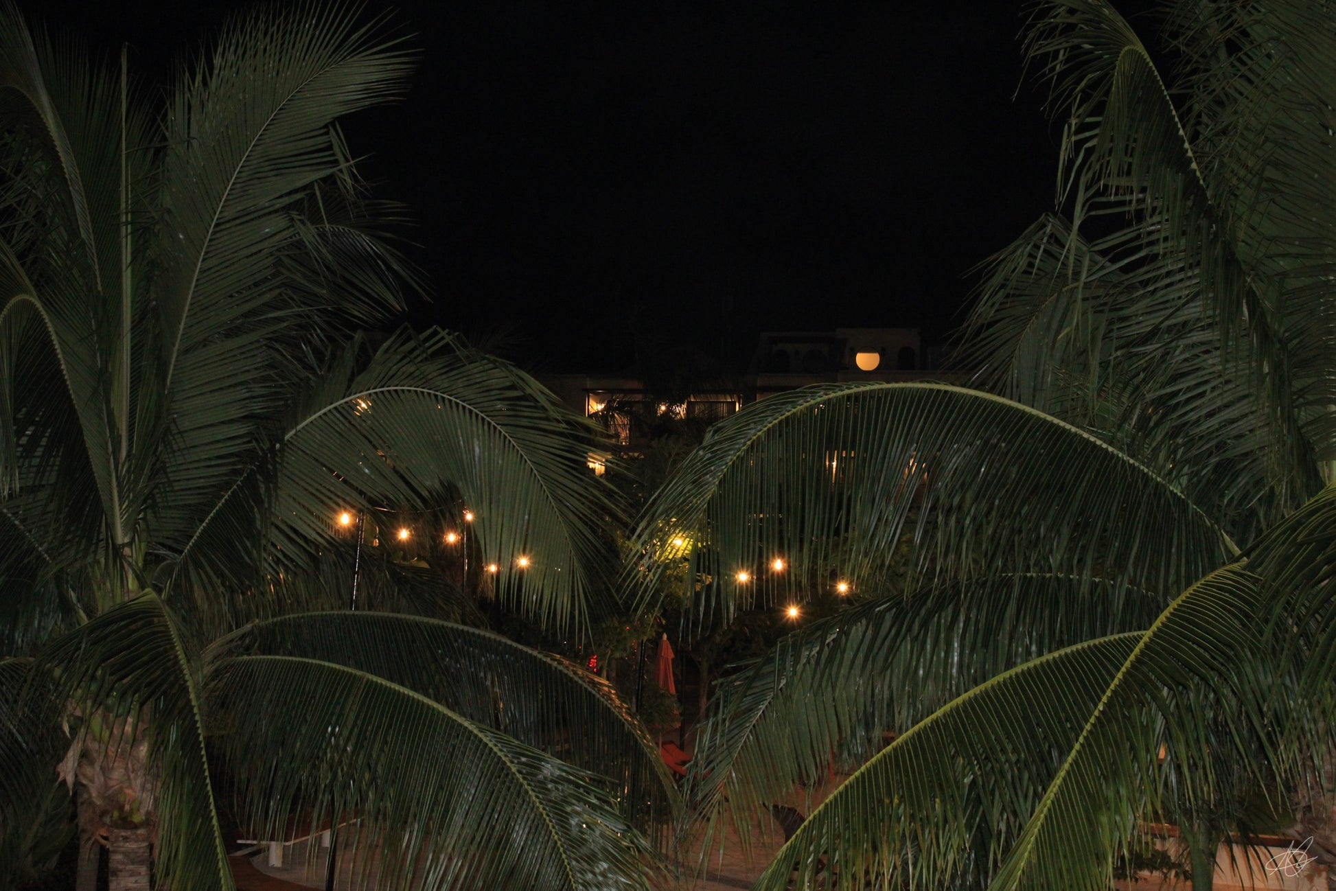 A stunning black and white photograph of palm trees silhouetted against a starlit night sky. Enjoy this breathtaking scene each day, and feel an instant sense of calm and relaxation. Nighttime with the Palm Trees will transport you to a magical tropical paradise!