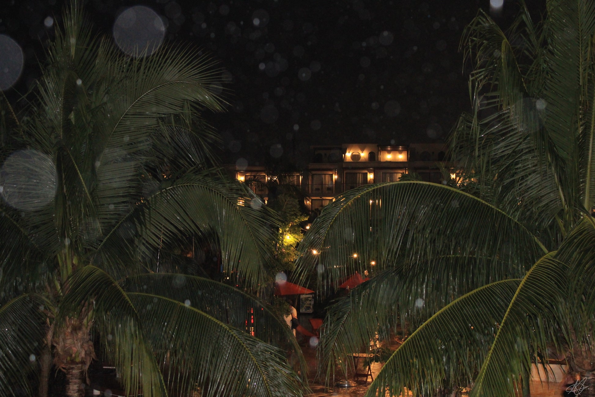 Nighttime in Cancun, Mexico with Rain