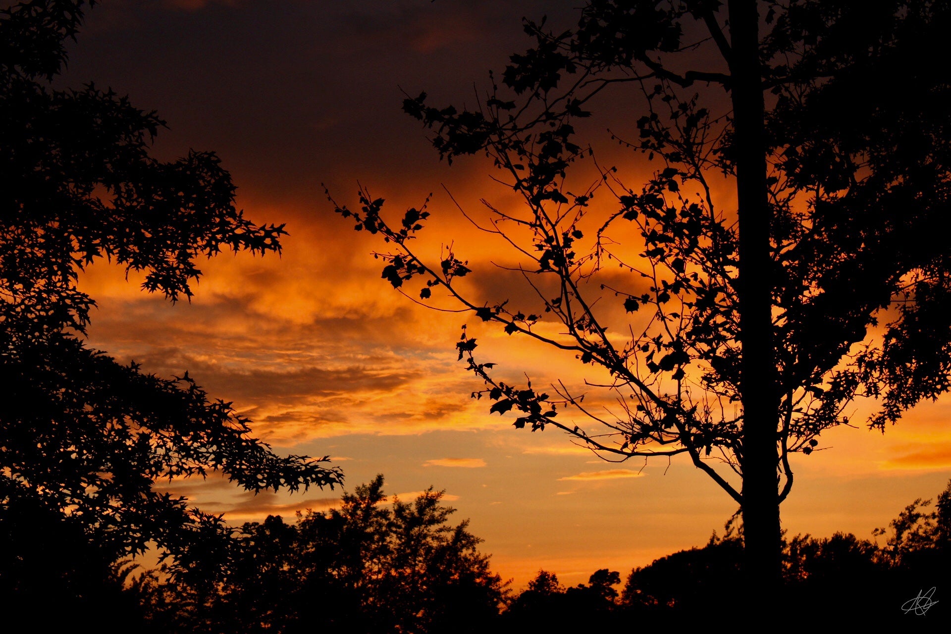 Orange Sunset Between the Trees