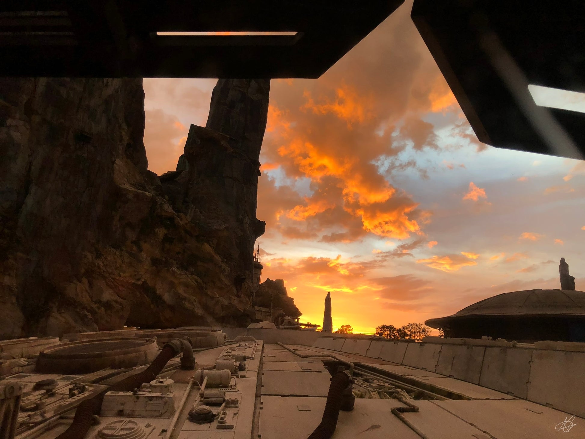 Capture the beauty of a magnificent sunset with this magnificent, zoomed out photograph of a monument. From the brilliant sunset sky to the silhouette of the monument, you won't miss any of the stunning details. Feel inspired and enlivened by the vibrant colors and awe-inspiring scene!