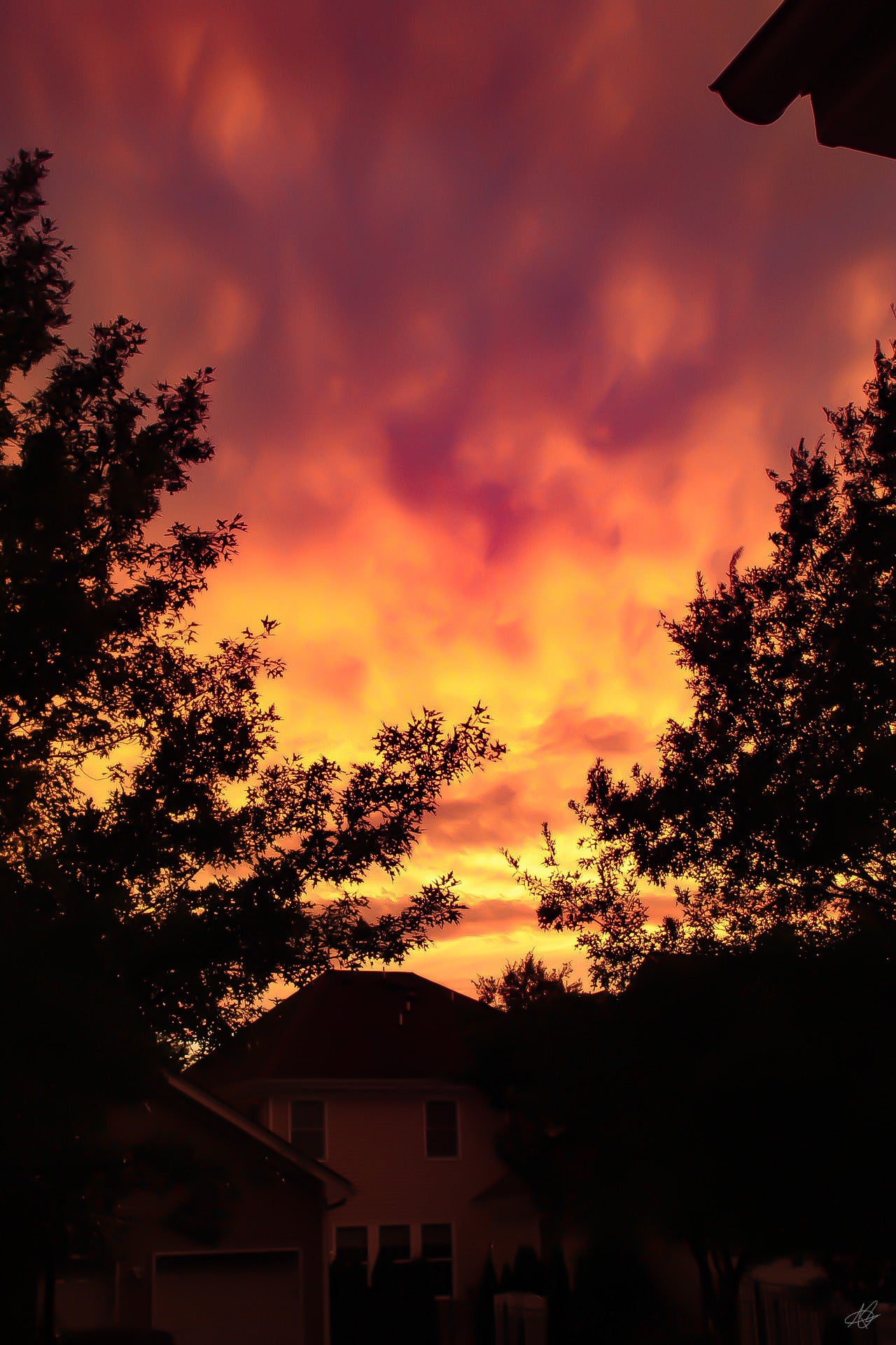 Dark Orange Hazy Sunset Over the Trees (Portrait)